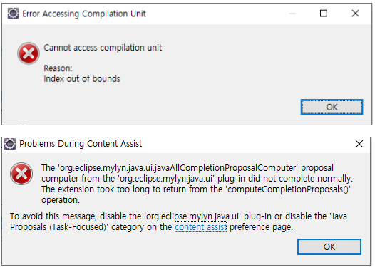 Compilation Unit / Problems During Content Assist
