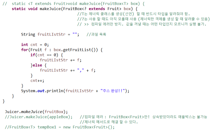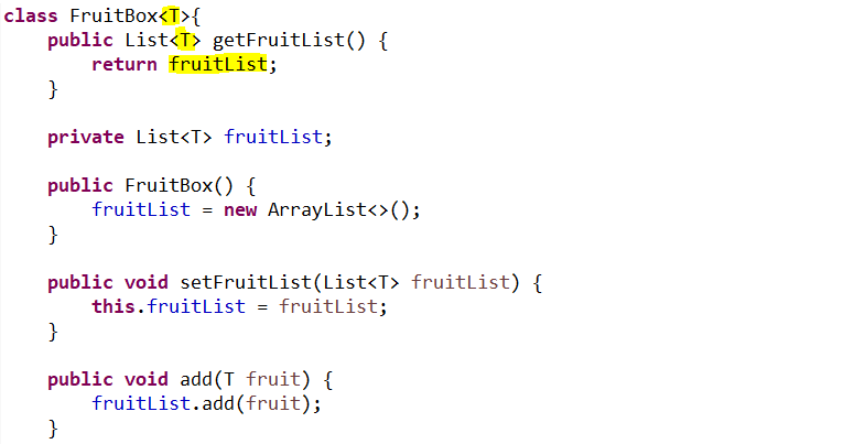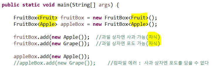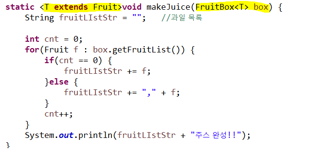 >> 파라미터 : 과일을 상속받은 T를 담은 과일상자(List)