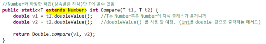 >> Number 혹은 Number의 자식 클래스라면, doubleValue() 를 사용 할 수 있을테니까 extednds Number라고 설정한 것.