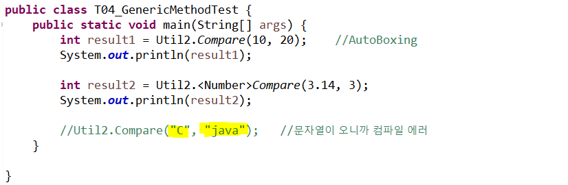 >> Util2.Compare() 는 Number 혹은 그 자손만 쓸 수 있음