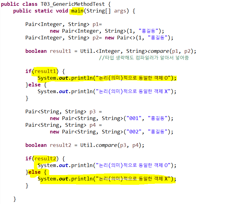 - 제너릭 클래스가 아니어도(일반클래스) 제너릭 메서드 사용 가능