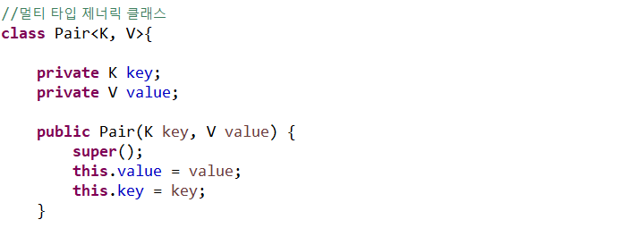 - T는 제너릭 클래스를 생성(선언) 할 때 반드시 타입을 알려줘야 함