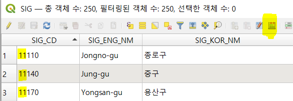 SIG 레이어에 조인조건으로 사용할 필드 생성 했다.