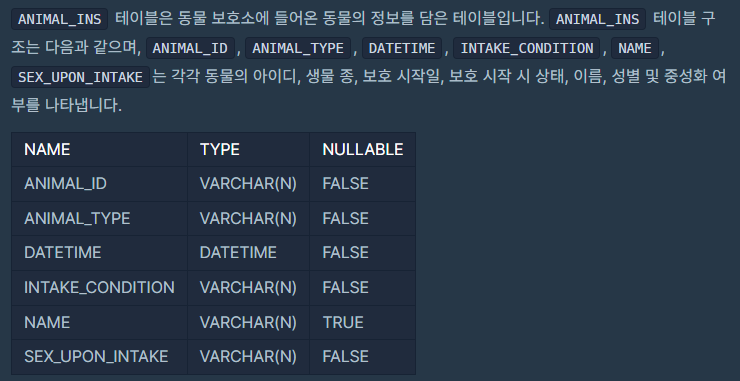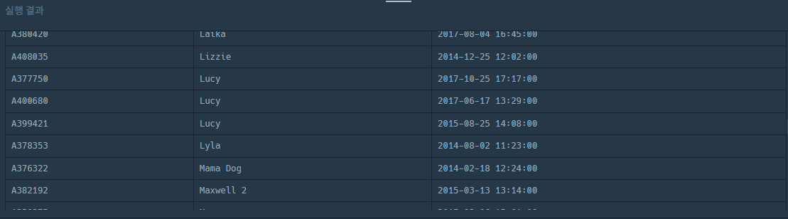 문제에서 나중에 들어온 동물을 먼저 보여주라는 요구가 있어서 내림차순으로 정렬하기 위해 DESC를 적었다