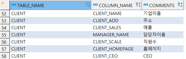 >> 모든 컬럼의 코멘트가 출력되었다.