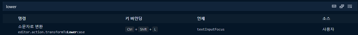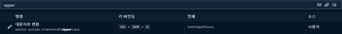2) 'upper'를 검색해서 대문자 변환 단축키를 설정한다.