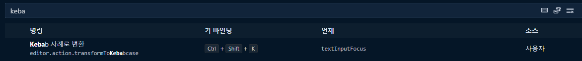 3) 키 바인딩 항목을 더블클릭 > 단축키 입력한다.
